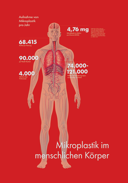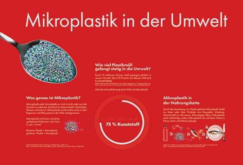 Informationsgrafik zum Thema „Mikroplastik“, Ausstellung „For real?“ (Horizo2025nt Akademie Faber-Castell 2025))
