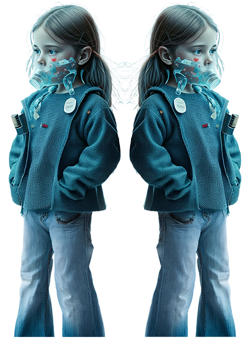 lebensgroßer Aufsteller zur Informationsgrafik, Ausstellung „For real?“ (Horizo2025nt Akademie Faber-Castell 2025)