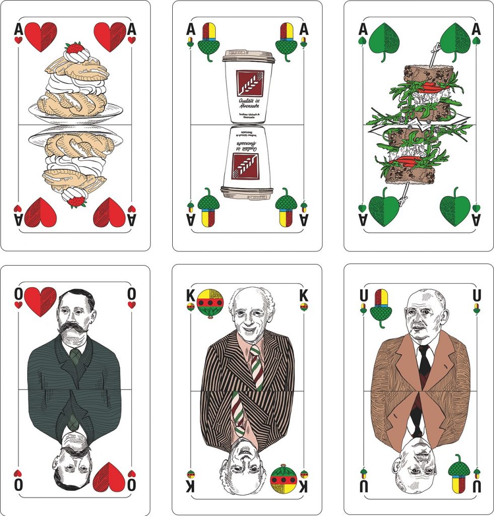 Illustration eines Kartenspiels nach Portraitvorlagen zum Firmenjubiläum (Design/Kolorierung Doreen Schröder)